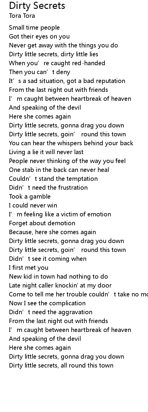 | Dirty little secrets, gonna drag you down | |
