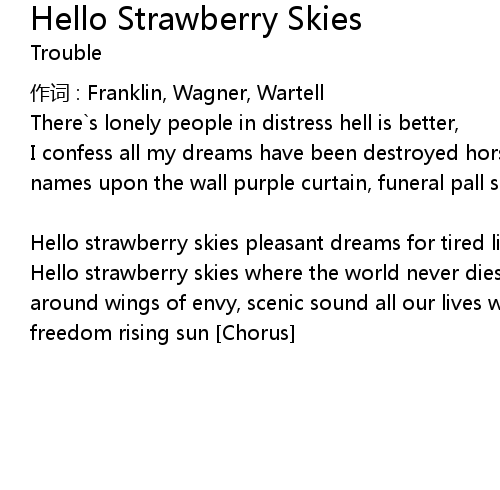 | Hello strawberry skies pleasant dreams for tired lives | |