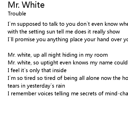 Mr. white, up all night hiding in my room |
