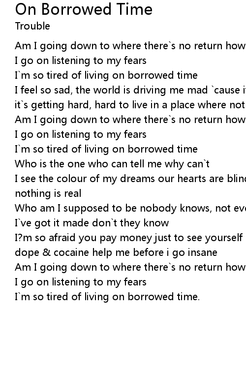 I`m so tired of living on borrowed time |