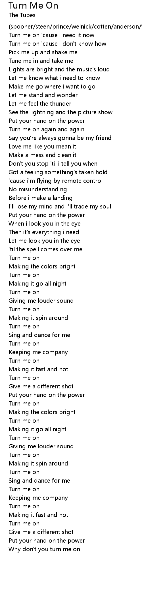 Why don't you turn me on |