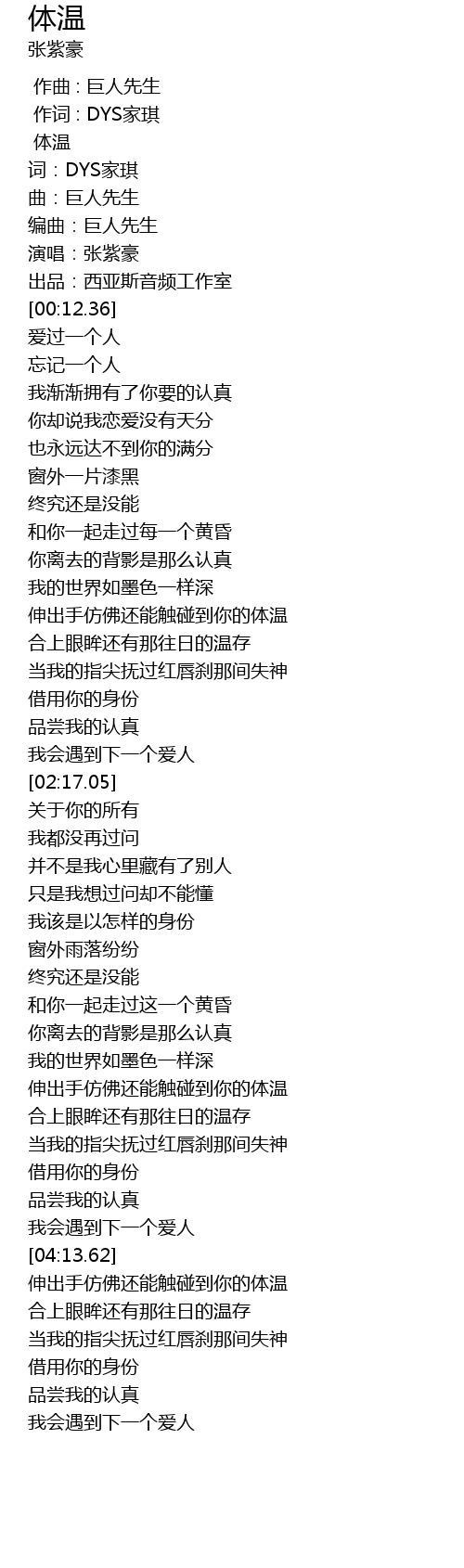 | [04:27.66] | 伸出手仿佛还能触碰到你的体温 |