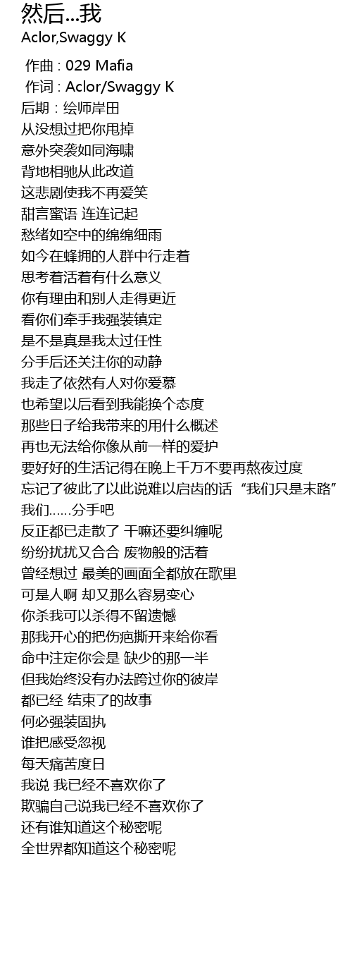 | [00:01.000] | 作词 : Aclor/Swaggy K |