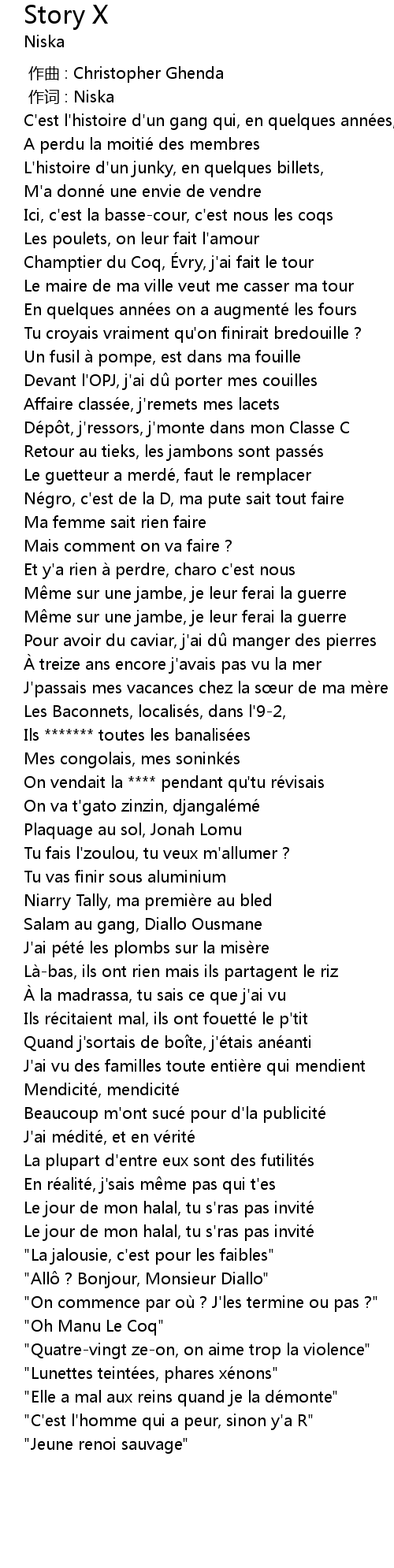 | [00:01.000] | 作词 : Niska |