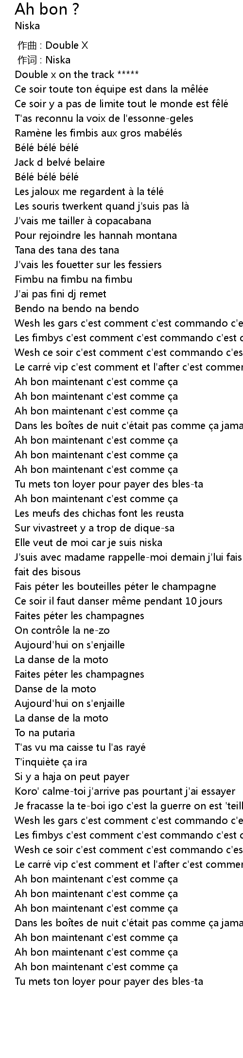 | [00:01.000] | 作词 : Niska |