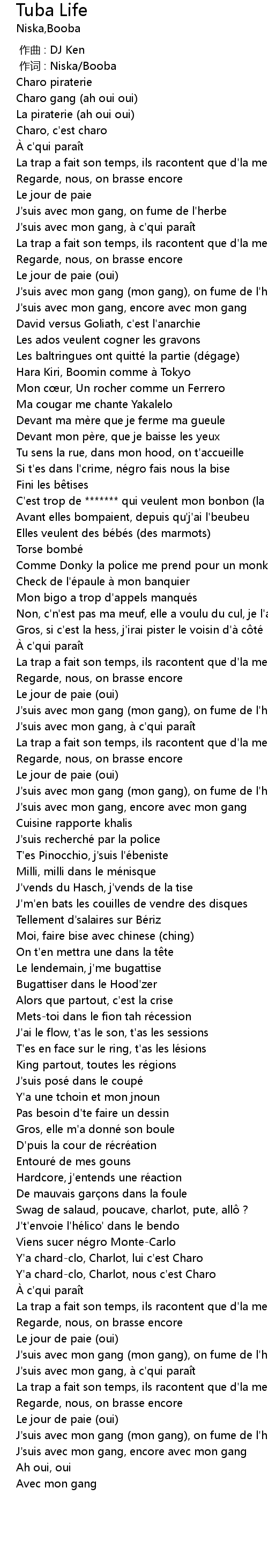 | [00:35.56] | J'suis avec mon gang, encore avec mon gang |
