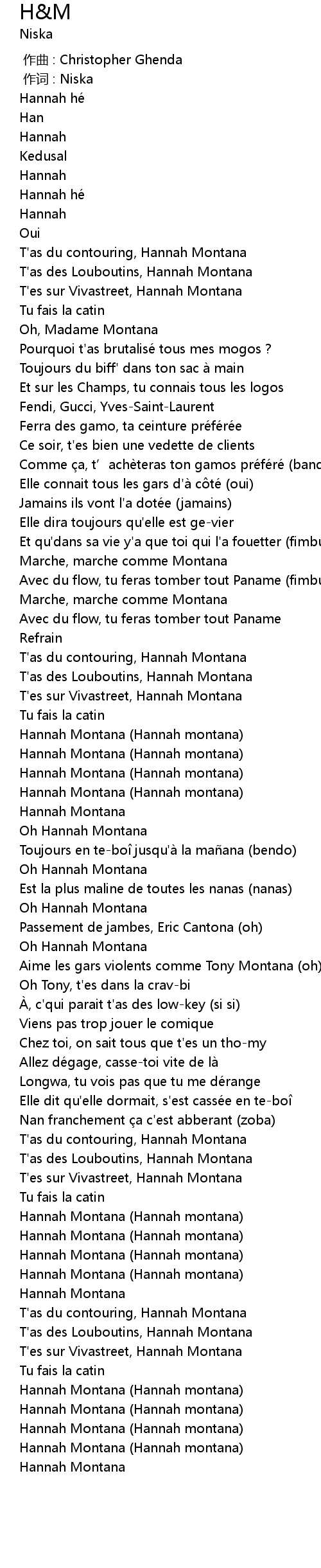 | [01:39.71] | T'as du contouring, Hannah Montana |
