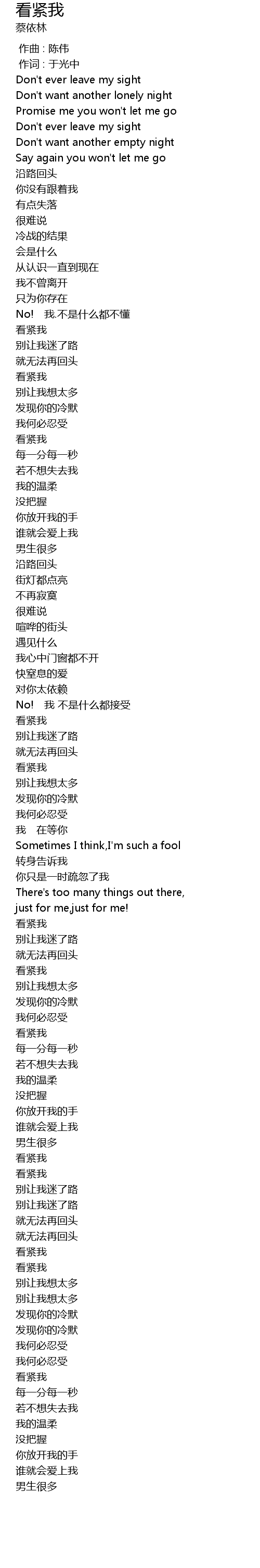 | [00:34.67] | nǐ méi yǒu gēn zhe wǒ |