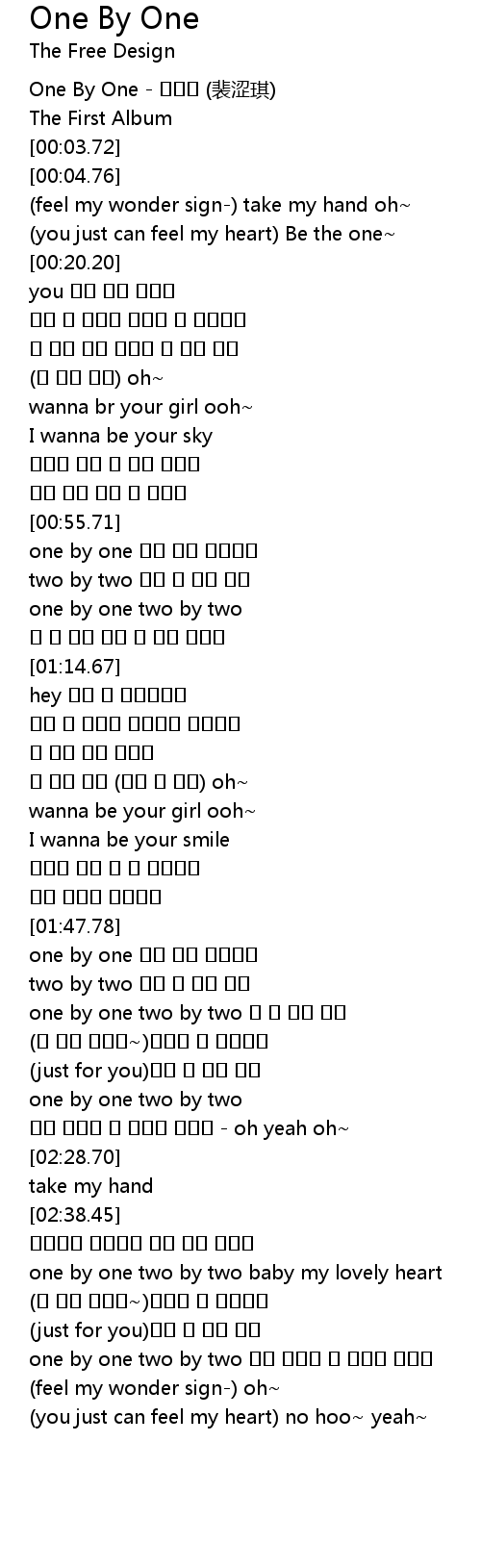| [00:01.56] | One By One - 배슬기 (裴涩琪) |