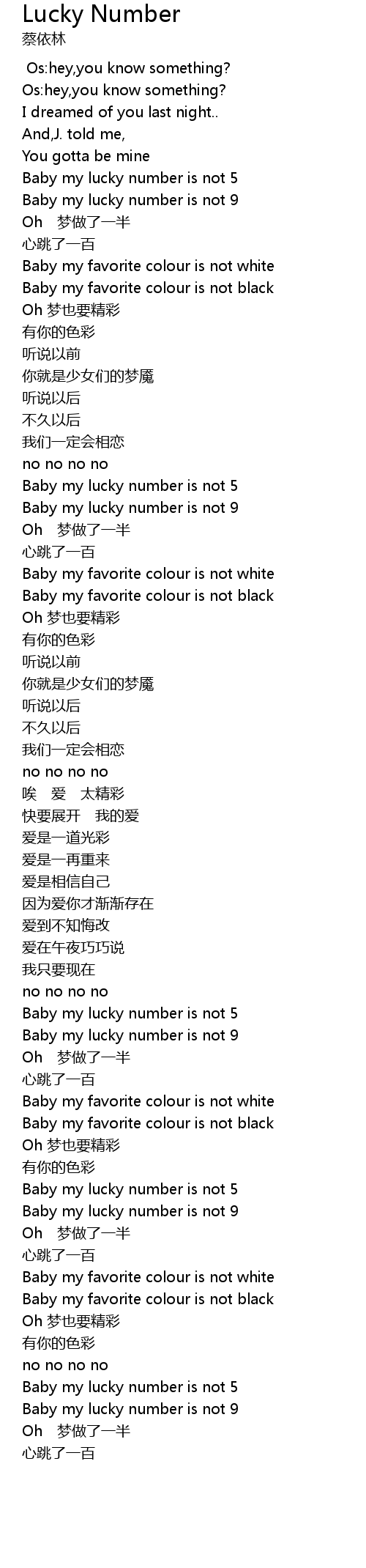 | [03:17.400] | Baby my lucky number is not 9 |