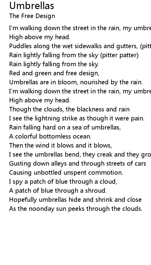I see the umbrellas bend, they creak and they groan. |