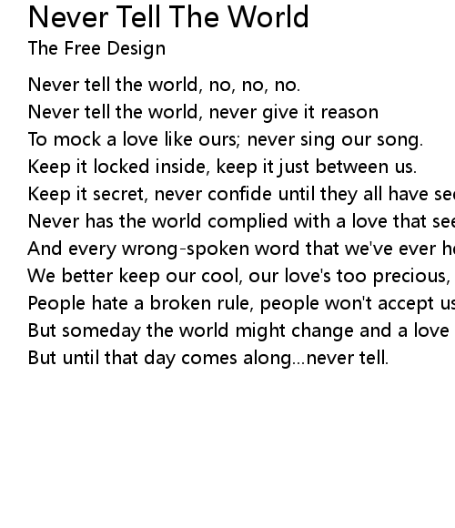 Never tell the world, no, no, no. |