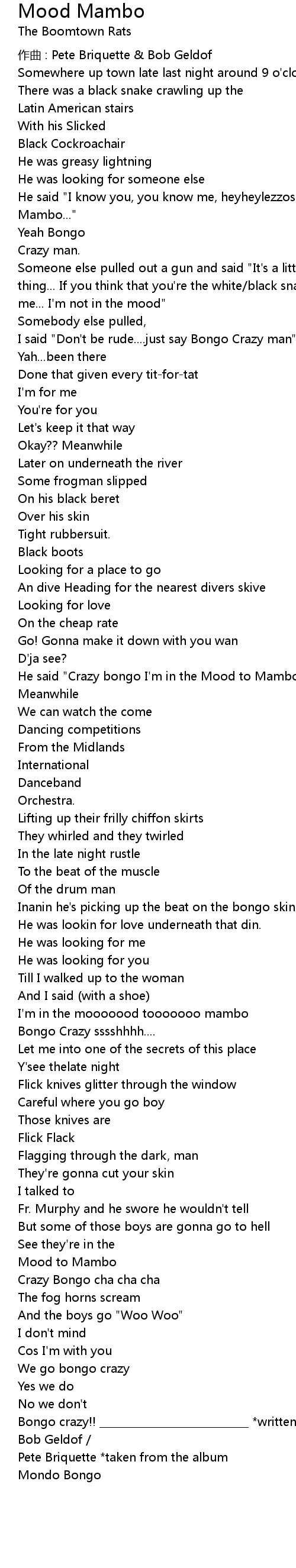 | 作曲 : Pete Briquette & Bob Geldof | |