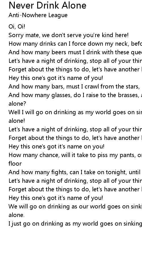 Well I will go on drinking as my world goes on sinking, but I will never drink alone! |