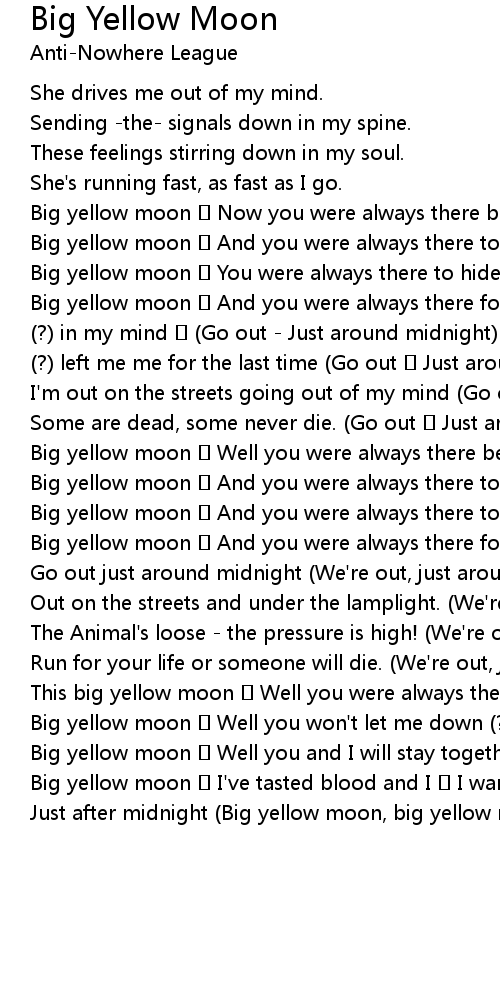 | Just after midnight Big yellow moon, big yellow moon x4 |
