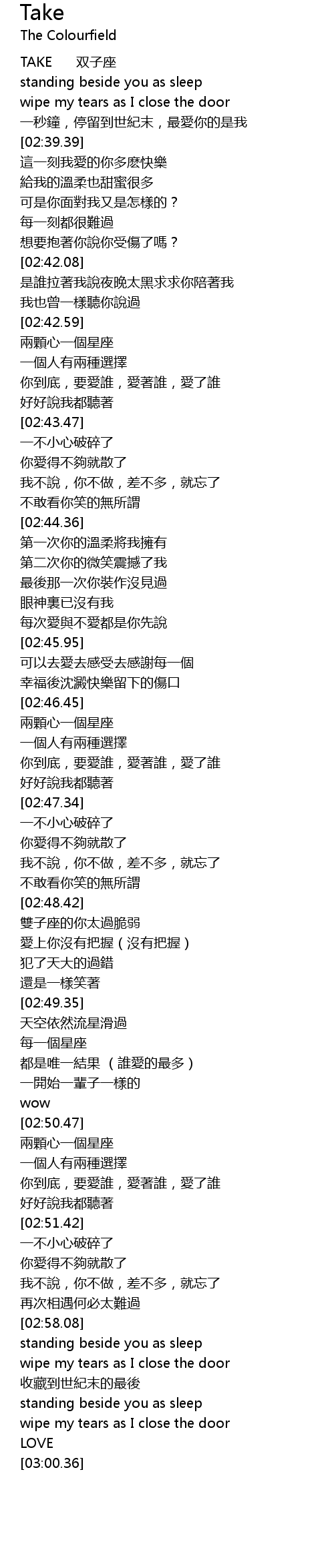 | [02:38.48] | TAKE 双子座 |