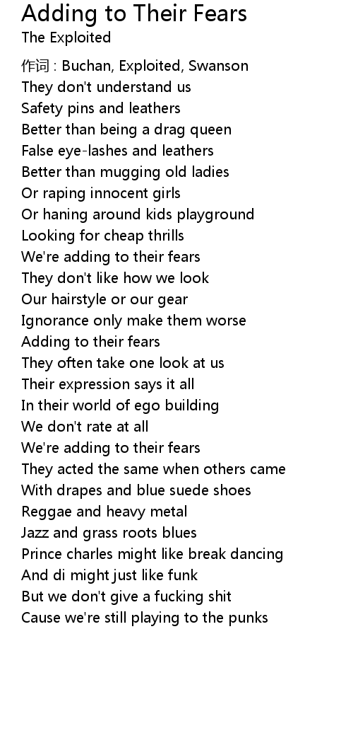 | Song | Adding to Their Fears |