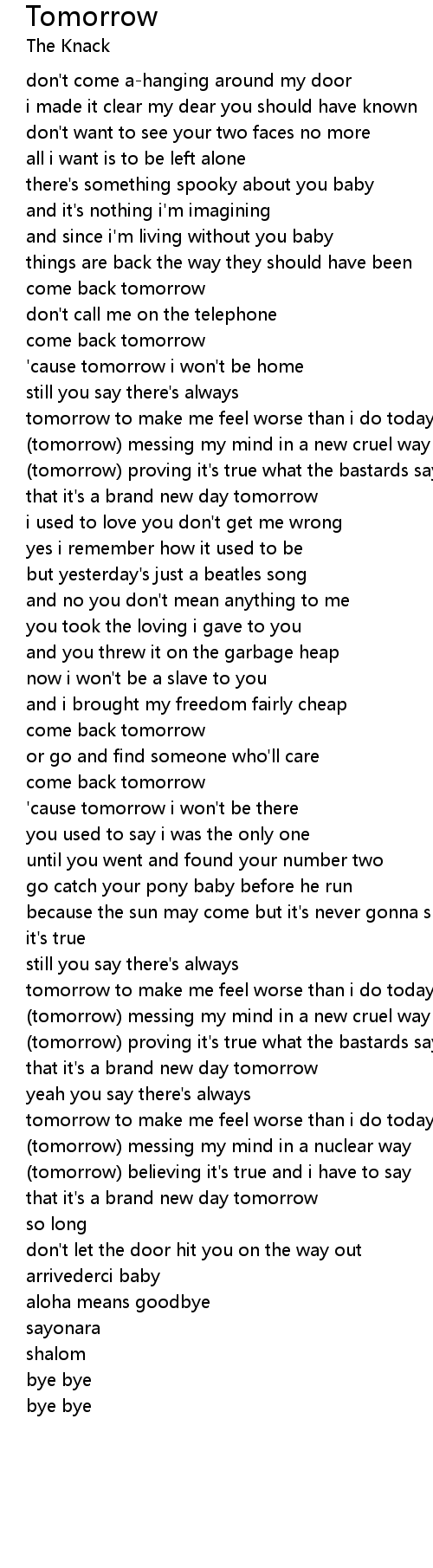| 'cause tomorrow i won't be home | |
