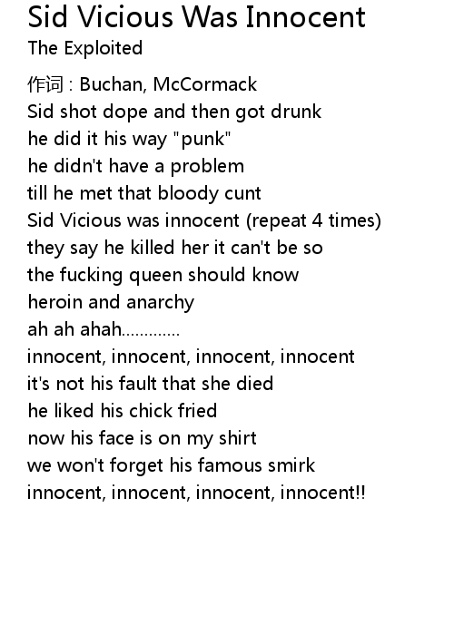 | Song | Sid Vicious Was Innocent |