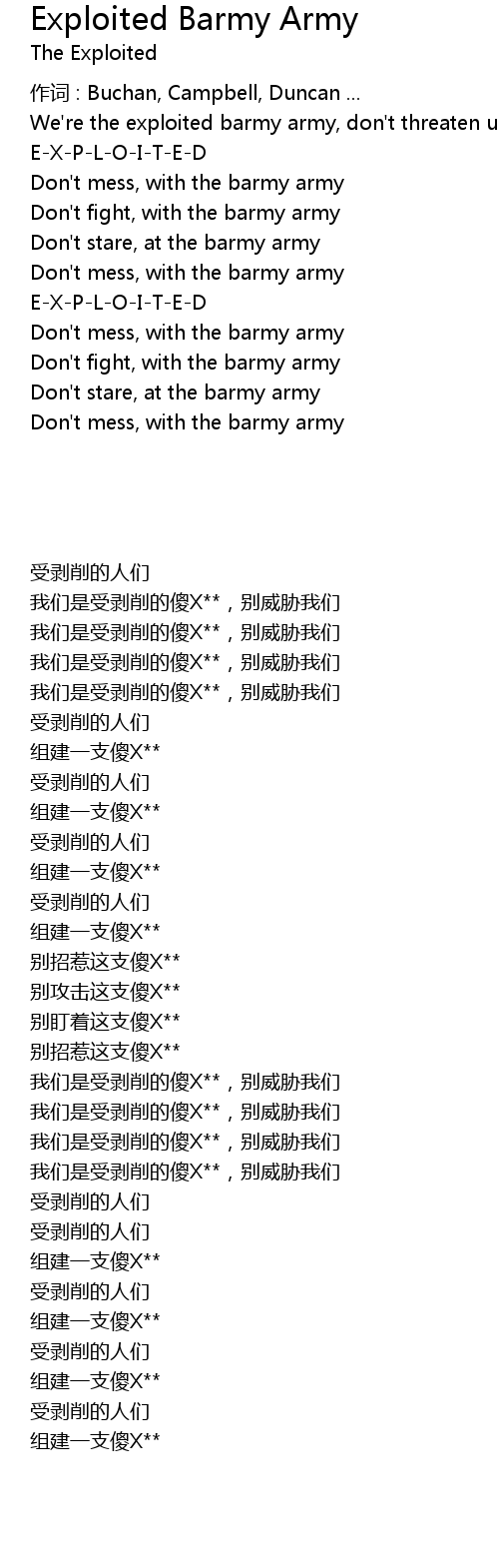 | We' re the exploited barmy army, don' t threaten us | |
