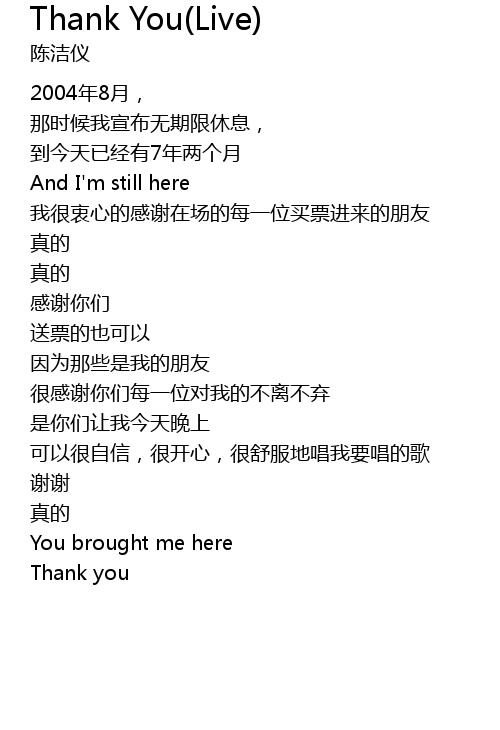| wǒ hěn zhōng xīn de gǎn xiè zài chǎng de měi yī wèi mǎi piào jìn lái de péng yǒu | |