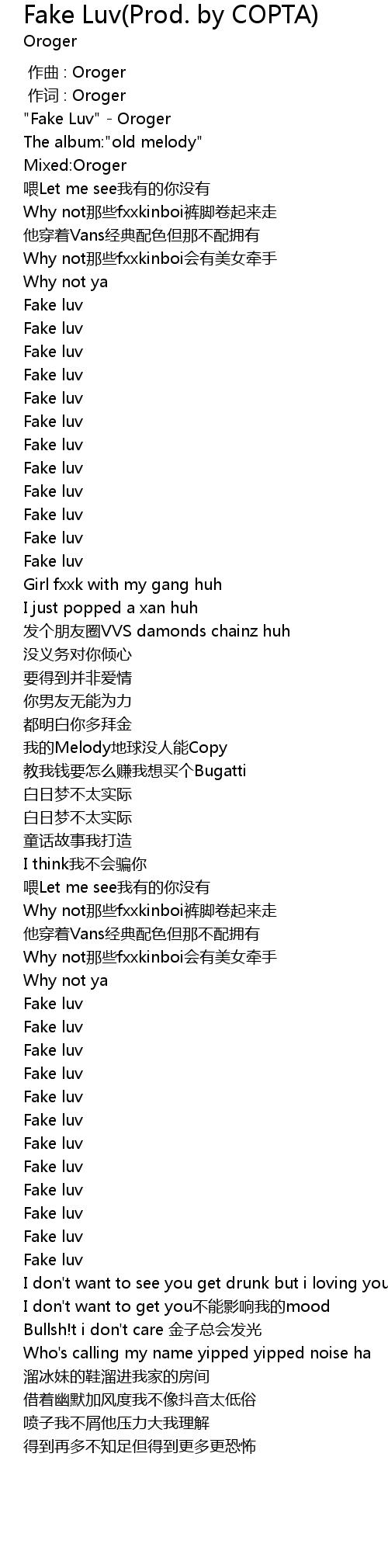| [00:02.03] | "Fake Luv" - Oroger |
