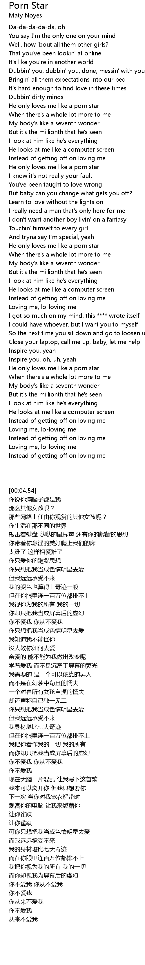 He only loves me like a porn star |
