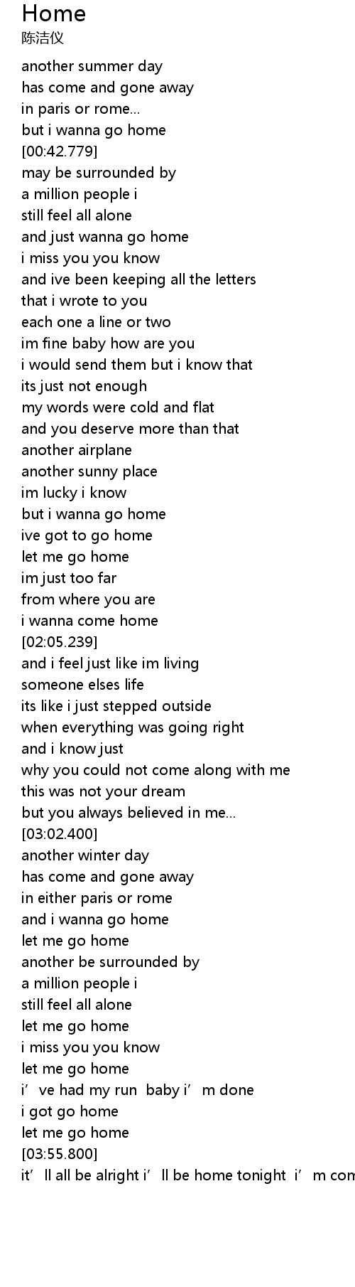 | [03:56.360] | it' ll all be alright i' ll be home tonight i' m coming back home |