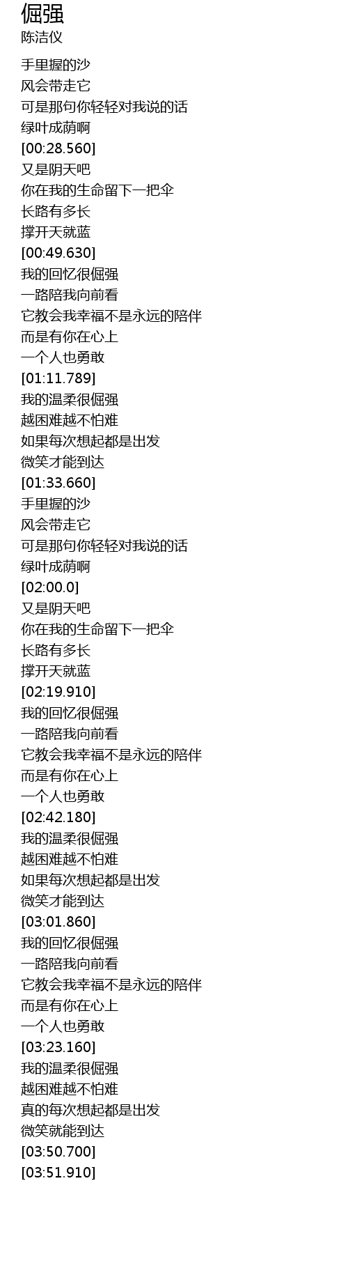 | [03:20.640] | 一个人也勇敢 |