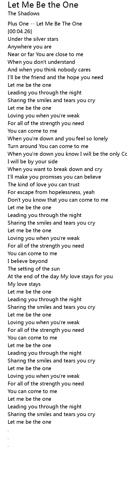 Let Me Be the One Lyrics