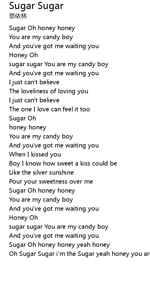 | [00:38.560] | Sugar Oh honey honey |