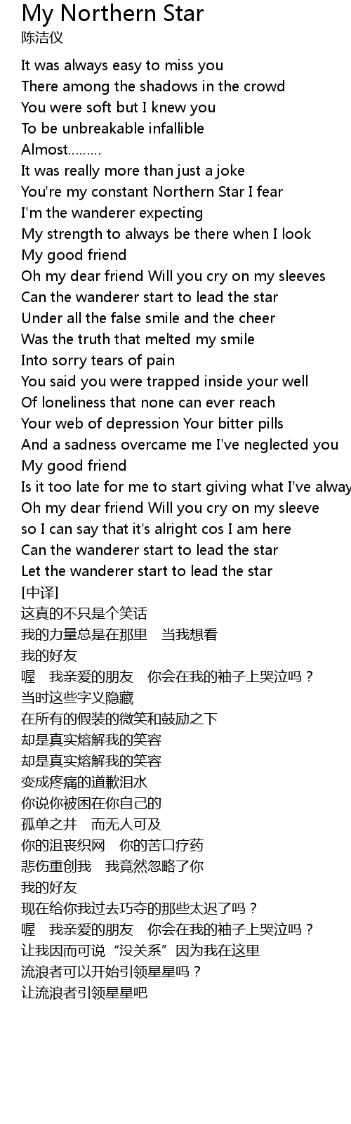 | 喔 我亲爱的朋友 你会在我的袖子上哭泣吗? | |