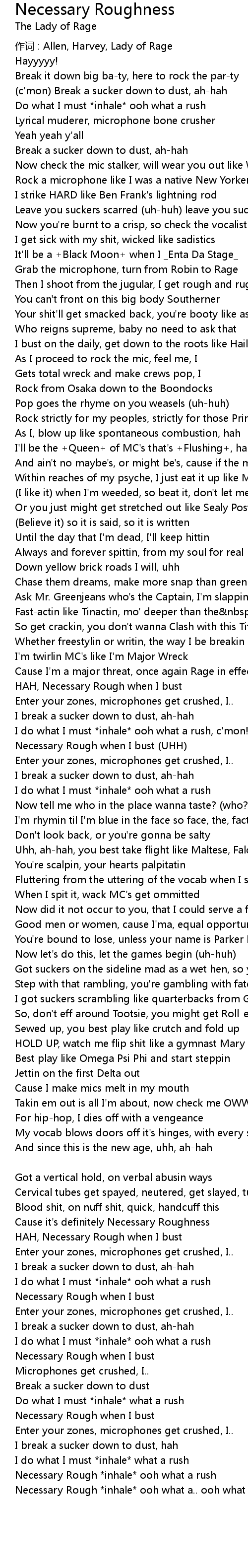 | HAH, Necessary Rough when I bust | |