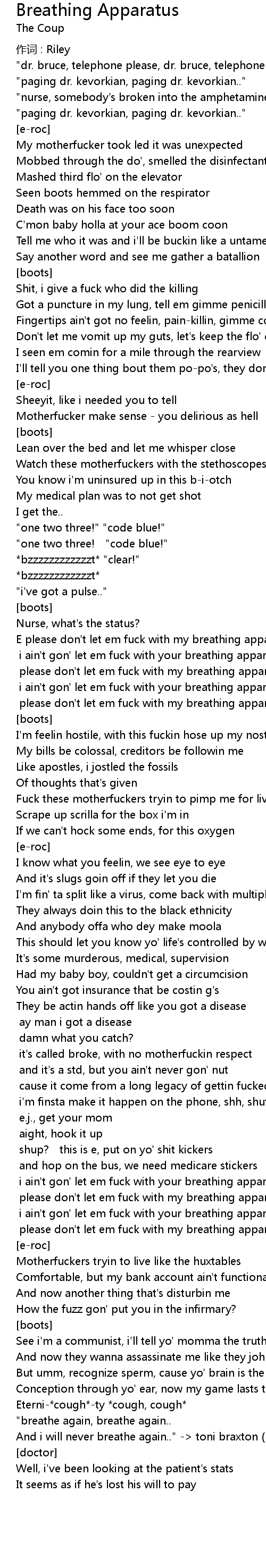 | E please don' t let em fuck with my breathing apparatus | |