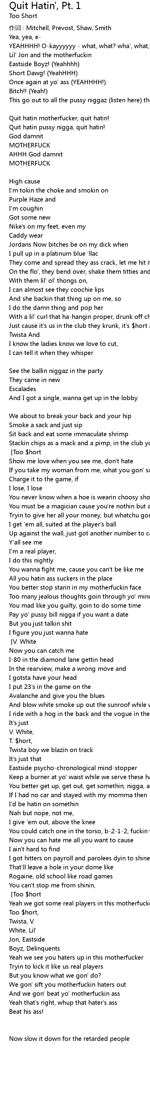 | This go out to all the pussy niggaz listen here that see us when we walk in the club whassup and just be mean muggin! Chorus: Lil' Jon repeat 2X | |