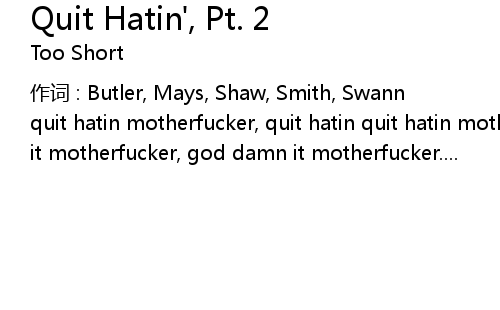 | quit hatin motherfucker, quit hatin quit hatin motherfucker, quit hatin god damn it motherfucker, god damn it motherfucker.... |