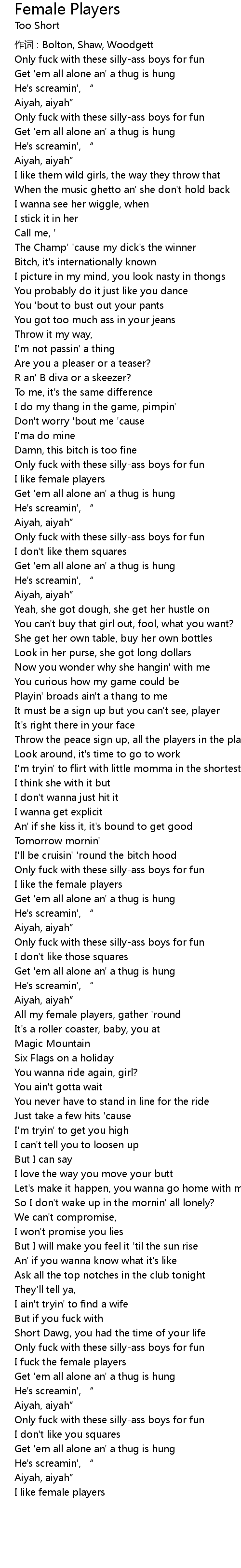 | All my female players, gather ' round | |