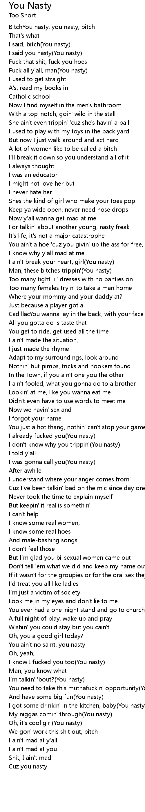 | BitchYou nasty, you nasty, bitch | |