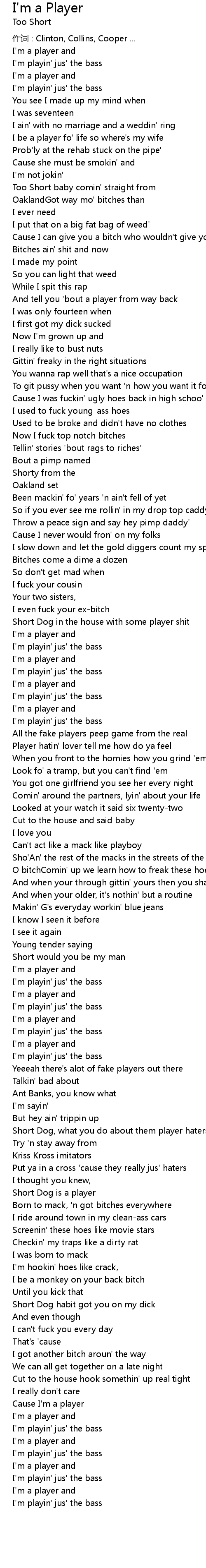 | Cause I' m a player | |