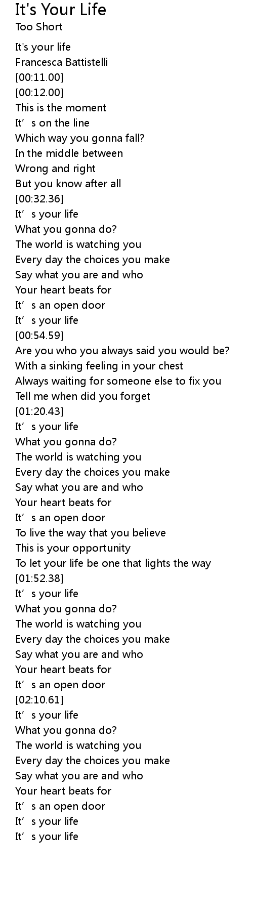 | [00:01.00] | It's your life |