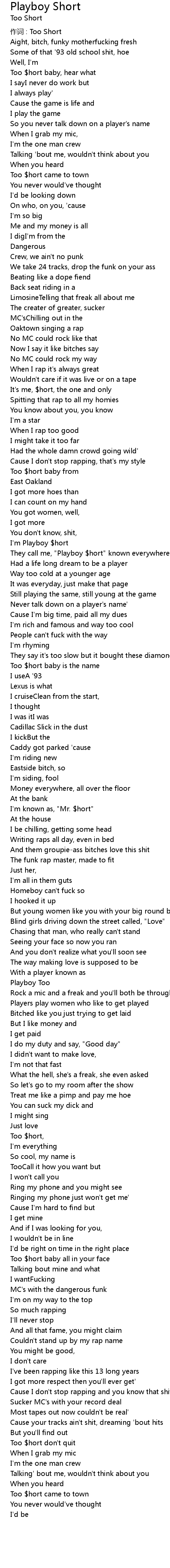 | 作词 : Too Short | |