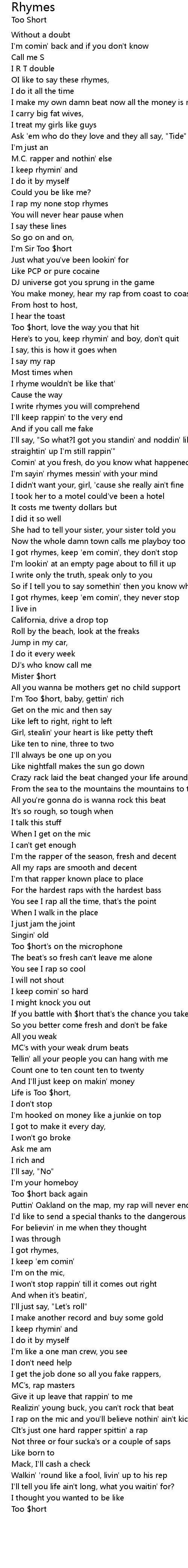 Too $hort |