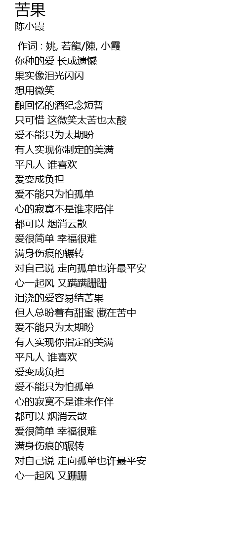 | [00:00.00] | 作词 : 姚, 若龍/陳, 小霞 |