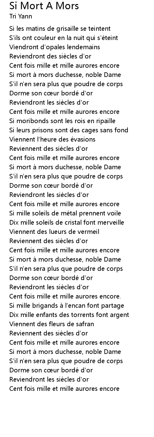 | Song | Si Mort А Mors |