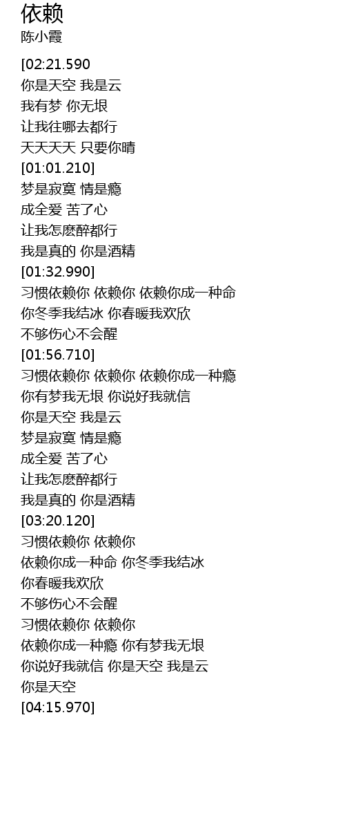 [01:57.830] xí guàn yī lài nǐ  yī lài nǐ  yī lài nǐ chéng yī zhǒng yǐn