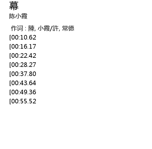 | [00:00.00] | 作词 : 陳, 小霞/許, 常德 |