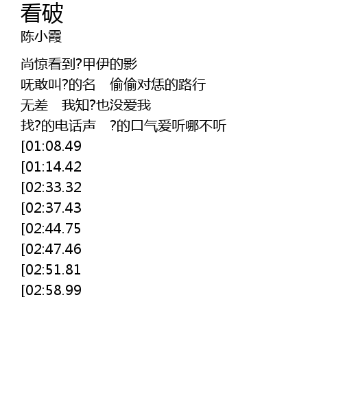| [03:02.11][02:33.32][01:21.50] | 无情的你一声声 逼阮看破 |