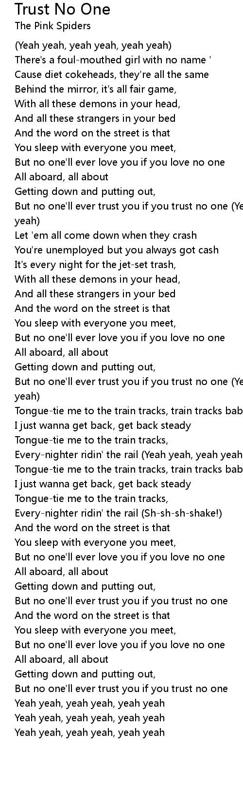 But no one'll ever trust you if you trust no one (Yeah yeah, yeah yeah, yeah yeah) |