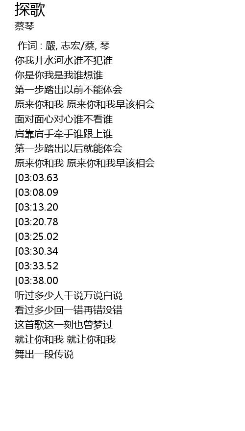 | [03:50.74][03:08.09][01:48.60] | 是退还是进 一步藏着风一阵 |