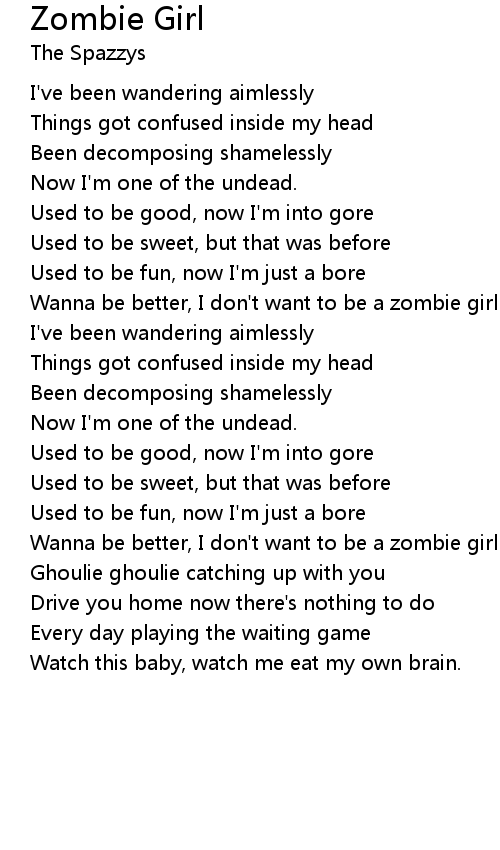 Wanna be better, I don't want to be a zombie girl no more. |
